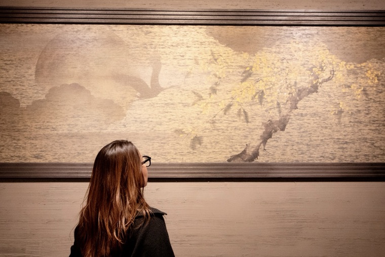 七色に移ろう「月下の櫻」や水墨画などの意匠をしつらえた館内。麗しの空間で、作品を巡りながら言葉を紡ぐ体験もお楽しみいただけます。