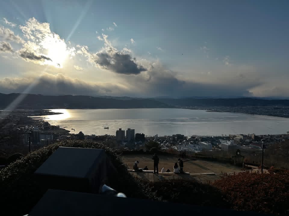 立石公園では夕暮れ時の諏訪湖を眺めにたくさんの方がいらっしゃいました。