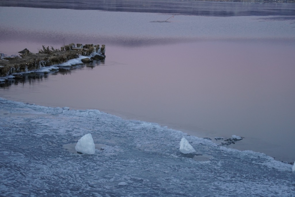 本日も気温はマイナス8度と冷え込み、岸の寄せ氷は18センチほどの厚さで結氷しているものの、諏訪湖全体的を見渡すと凍っている部分が減っておりました。