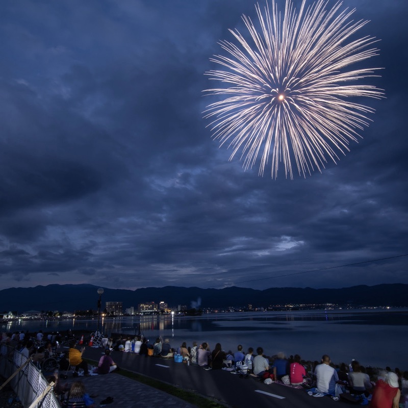 例年、多くの人が諏訪湖で上がる花火に魅了されています。